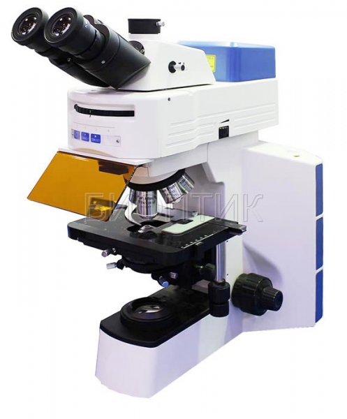 Четырехпозиционная турель для флуоресцентных фильтров. LED источник возбуждающего излучения 12Вт (6В/2А).